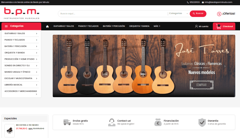 Beats Por Minuto es una tienda especializada en instrumentos musicales, desarrollada con Prestashop con más de 10.000 referencias distintas.